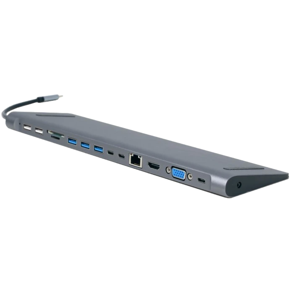 ● Вхід: USB 3.1 Type-C, тато; Довжина кабелю 15 см;● Вихід USB 2.0: 2 шт. X Type-A (мама);● Вихід USB 3.1 Gen 1 (5 Гбіт/с): 3 шт. X Type-A (мама, синій);● Вихід HDMI: Type-A (мама), макс. роздільна здатність: 4K при 30 Гц;● Порт USB Type-C PD: макс. PD 2.0 до 60 Вт;● LAN: гігабітний, порт RJ45;● Картрідер SD: формати SD та MicroSD, підтримує карти до 128 ГБ;● Відеороз'єми VGA 1920 x 1080 @ 60 Гц та аудіороз'єми 3.5 мм