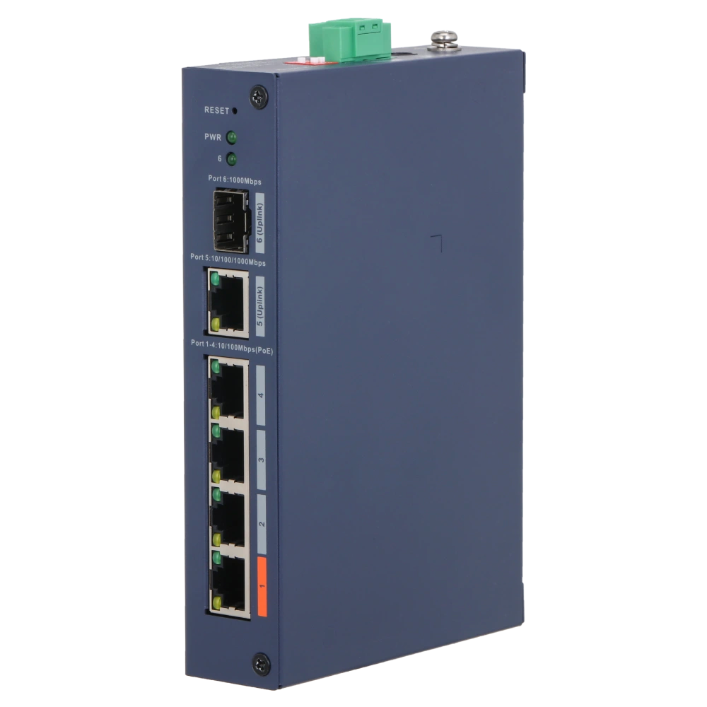 ● Downlink порти: 4x RJ45 (10/100M) з підтримкою PoE;● Uplink порти: 1x RJ45 (10/100/1000M), 1x SFP 1000M ;● Протокол PoE: IEEE802.3af (PoE), IEEE802.3at (PoE+), Hi-PoE / бюджет 60 Вт;● Живлення: 53В DC, 1.3 A;● Робоча температура: -30º - + 65ºC;● 154.3 × 110.4 × 30 мм