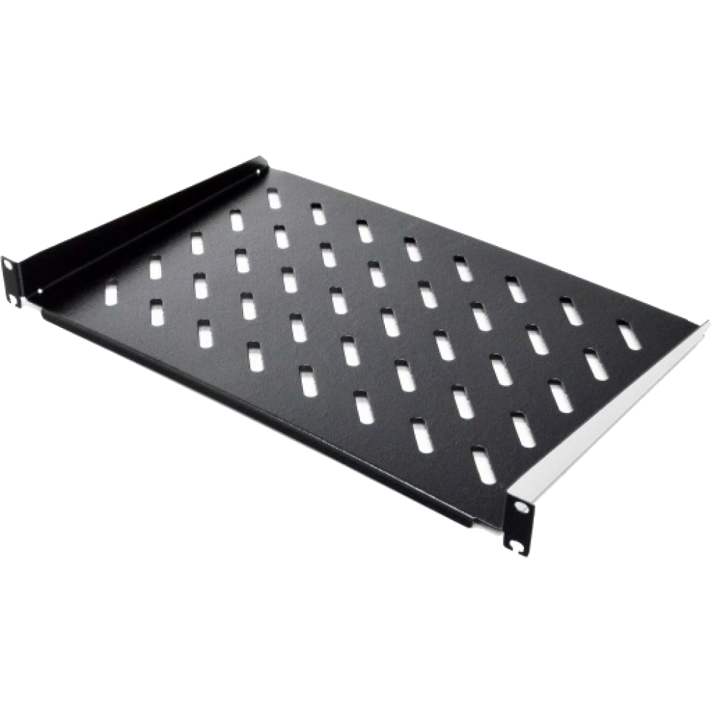 Консольна полиця 350 мм призначена для встановлення в серверні шафи або комутаційні стійки у дві вертикальні напрямні 19″. Даний тип полиць часто встановлюється в настінні шафи, в яких немає доступу з чотирьох сторін і кріплення на другу пару 19″ напрямних утруднено. Полиці використовують для розміщення мережного обладнання без вбудованого кріплення під напрямні 19 дюймів, наприклад: медіаконвертери, комутатори, Wi-Fi роутери, відеореєстратори, ДБЖ. Завдяки овальній перфорації на підставі, можлива жорстка фіксація обладнання за допомогою тканинної або пластикової стяжки. Таке рішення використовується за відсутності гумових ніжок на обладнанні, щоб уникнути ковзання по металевій поверхні.