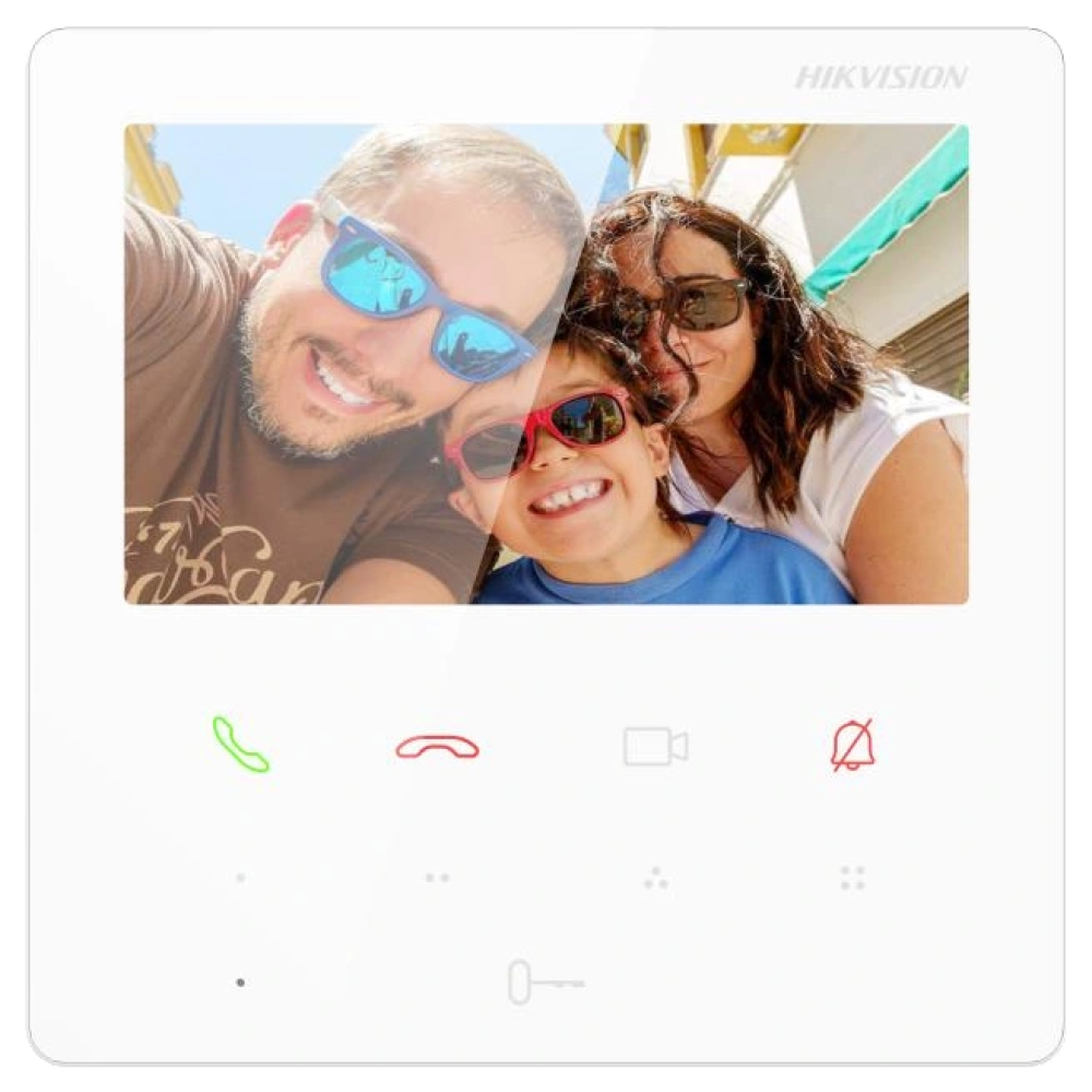 Легке та швидке налаштування: зручний дизайн. Барвистий сенсорний екран діагоналлю 4,3 дюйма з роздільною здатністю 480×272. Стандартний блок живлення PoE без додаткового адаптера живлення. Зручне мобільне керування Hik-Connect APP Перегляд відео в реальному часі дверних станцій і підключених камер. Користувачам зручно налаштовувати функції відповідно до власних звичок використання за допомогою 4 спеціальних сенсорних кнопок.