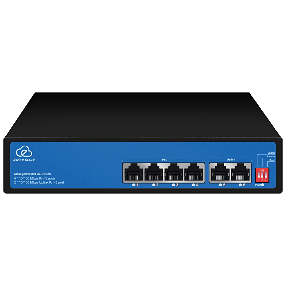 ● Downlink порти: 4x RJ45 (100M);● Uplink порти: 2x RJ45 (100M)● Живлення: AC100~240V;● Робоча температура: -20º - +55ºC;● Підтримує віддалене керування хмарною платформою EWIND та роботу мобільної програми, пропонуючи різні оповіщення в реальному часі, виявлення несправностей та перезапуск порту тощо;● Стандарти PoE IEEE 802.3af/at 15,4 Вт/30 Вт на порт бюджет 65Вт;● 195 х 130 х 40 мм