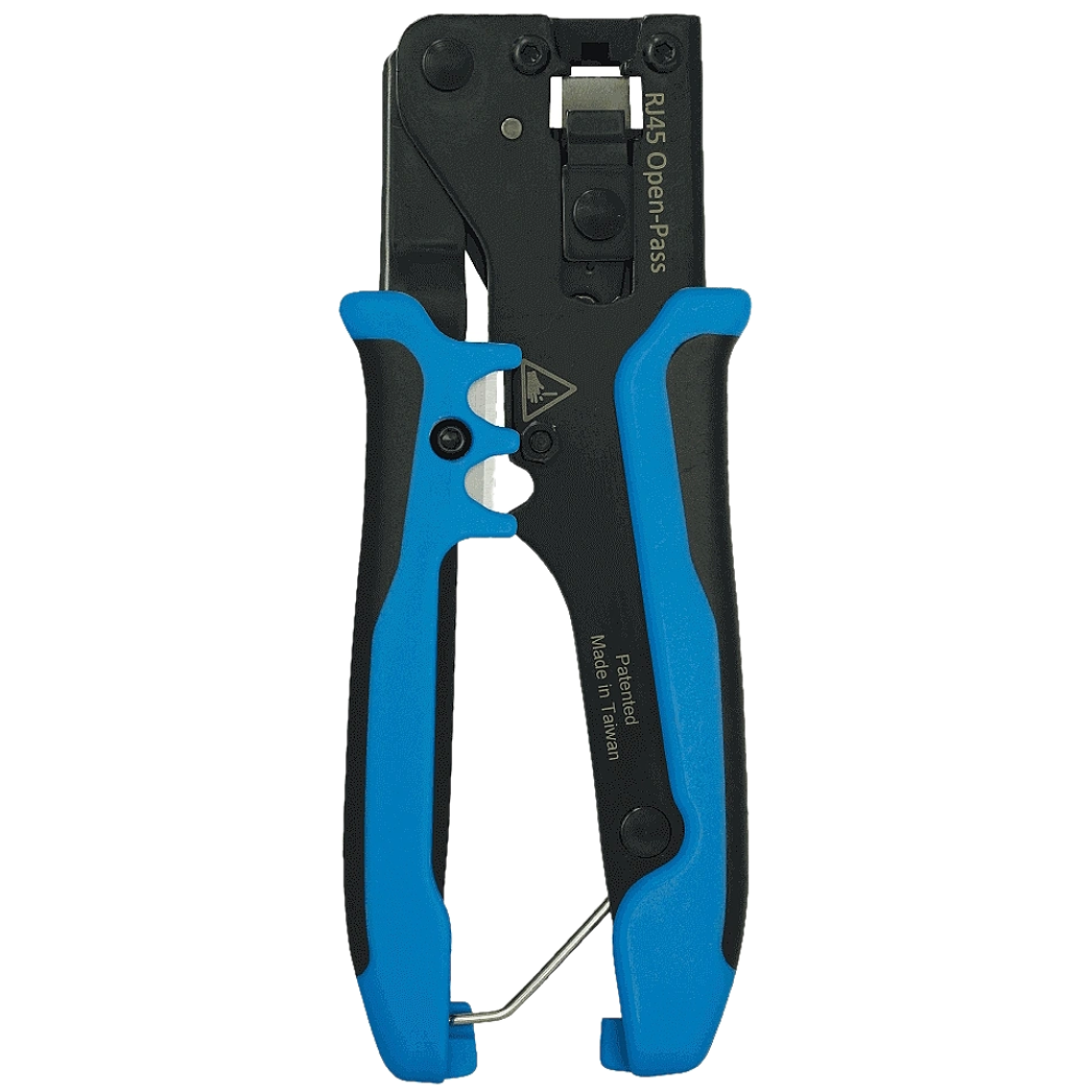Інноваційний наскрізний ручний інструмент для обтискання конекторів 8P. Призначений для всіх телекомунікаційних та мережевих установників. Є вбудовані кусачки та інструмент для зачистки кабелю. Застосовується для монтажу наскрізних конекторів RJ45.