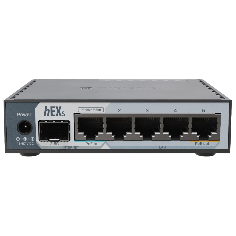 ● Інтерфейси (1) SFP (2.5G підтримка) порт, (5) Gigabit Ethernet портів, USB 3.0 type A;● Операційна система RouterOS v7;● Джерело живлення 24V, адаптер 1.2А, PoE in 802.3af/at;● Роз'єм живлення 2 (DC jack, PoE-IN);● Підтримувані формати вхідної напруги DC jack: 12-57 V. PoE-In: 18-57 V