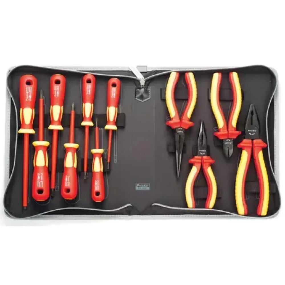 Pro'sKit PK-2802 – це набір діелектричного інструменту (11 шт.) в сумці з застібкою, в склад якого входять викрутки і плоскогубці, призначені для різноманітних робіт.