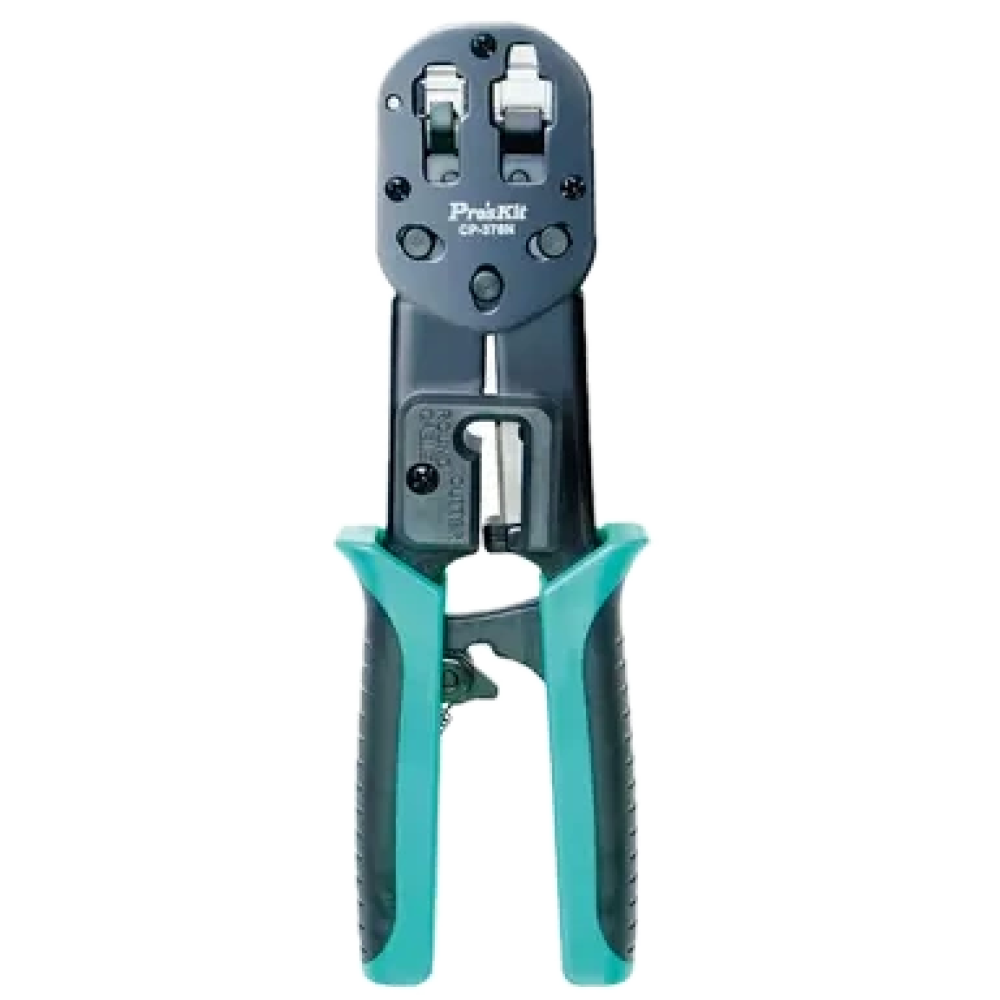 Професійний кримпер, призначений для обтискання конекторів типу "Western" 8P8C (RJ45), 6P2C / 6P4C / 6P6C (RJ11 / RJ12) та конекторів з наскрізними отворами. Інструмент оснащений вбудованим різаком та стрипером. Застосування: 8P8C (RJ45), 6P2C/6P4C/6P6C (RJ11/RJ12), конектори з наскрізними отворами. Обрізає та обтискає в одну дію. Можливість заміни леза. Акуратне паралельне обтискання забезпечує високу якість роботи. Важільна система та тріскачковий механізм. Ергономічне неслизьке руків'я гарантує комфорт використання в будь-яких умовах. Вбудований різак та стрипер.