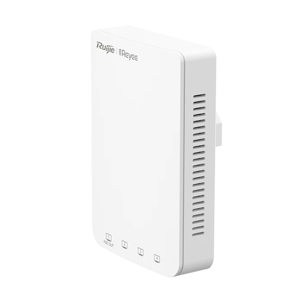 Внутрішня бездротова дводіапазонна гігабітна точка доступу для кріплення в стіну, Зручне налаштування через веб-Ruijie Cloud, або мобільний додаток; Протокол одночасний 802.11ac wave2, wave1, 802.11a/b/g/n; Робочі діапазони 802.11b / g / n : 2,4 ГГц ~ 2,4835 ГГц, 802.11a / n / ac : 5G 5,150 ~ 5,350 ГГц , 5,725 ~ 5,850 ГГц; вбудована антена; Просторові потоки 2,4 ГБ 2x2MIMO 5G 2x2MIMO; Макс. пропускна здатність 2,4 Гбіт/с: до 400 Мбіт/с, 5G: до 867 Мбіт/с; Швидкість доступу на точку доступу: 1,267 Гбіт/с; Сервісні порти Передній: 4 порти 10/100/1000Base-T Порт LAN1 підтримує вихід IEEE.802.3af PoE, Задній: 1 порт 10/100/1000Base-T; живлення Підтримка PoE (802.3af/at); до 110 одночасних користувачів, Підтримка безшовного роумінгу Wi-Fi