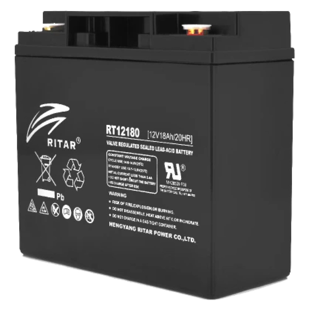● тип клем - F13 (М5);● тип батареї – AGM;● напруга - 12 В;● внутрішній опір – 14 мОм;● ємність - 18 А•год;● максимальний струм розряду – 180 А;● максимальний зарядний струм – 5,4 A;● 181х77x167 мм;● 5,24 кг