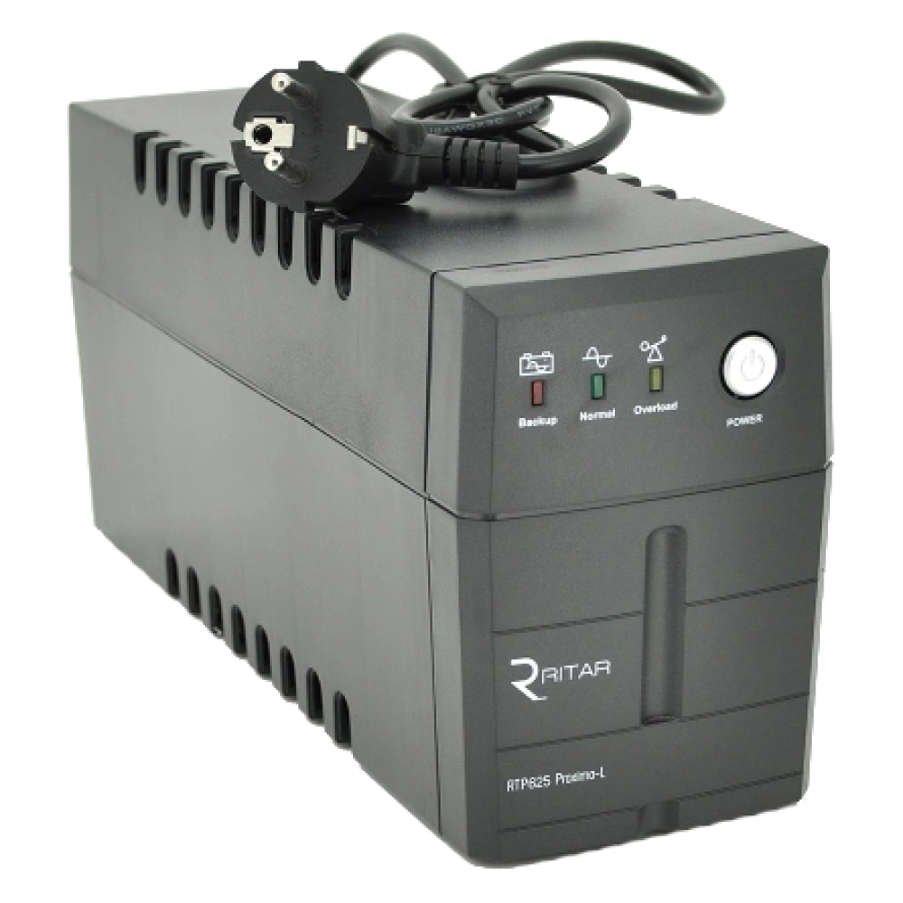 ● Номінальна потужність: 625VA / 375Вт;● Герметична батарея: 12В 7А●год;● Кількість розеток : 2;● Коефіцієнт потужності: 0,6;● Тип вихідного сигналу: апроксимована (модифікована) синусоїда;● Вхідна напруга: 145 ~ 290V AC;● Час перемикання: 2 ≤ 6мс;● Час роботи від батареї при навантаженні 200Вт: 9.5 хвилини;● Захист від короткого замикання та повного розряду батареї;● Аварійне вимкнення при перевантаженні;● Індикація: світлодіоди Normal / Overload / Backup, індикатор заміни батареї