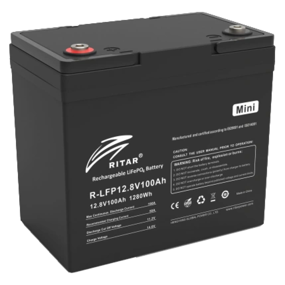 ● Номінальна напруга, В: 12.8;● Ємність 1280 Вт•г;● Номінальна ємність, А•год: 100;● Максимальний струм заряду, А: 50;● Максимальний струм розряду, А: 100;● Вбудований захист від глибокого розряду та перезарядження;● Кількість циклів: 3500;● Температурний режим роботи від -20°C до +55°C;● Габарити, мм: 229 х 138 х 210;● Маса, кг: 9.9 кг