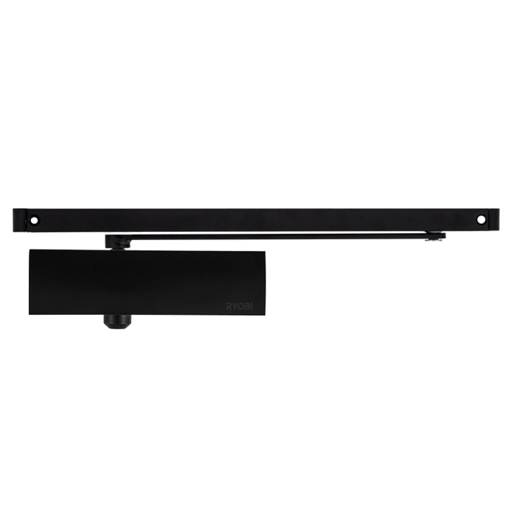 Дотягувач дверей RYOBI® серії 1200 модель D-1200T (Японія) накладного типу з ковзною тягою – призначений для керування внутрішніми та легкими зовнішніми дверима. Дотягувачі зі ковзною тягою не дозволяють відчиняти двері ширше, ніж на 105° – 130° (залежно від місця монтажу). Це зумовлено конструкцією самої ковзної тяги. Плаский дизайн європейского типу. Повністю контролює весь цикл зачинення дверей з роздільно регульованими швидкістями початкового та кінцевого зачинення (прихлопу). Дотягувач відповідає 2 класу згідно EN1154. Дотягувач з фіксацією відкритого положення дверей не може використовуватись у складі протипожежних дверей. Максимальна вага дверей - 40кг, Максимальна ширина дверей - 850мм.