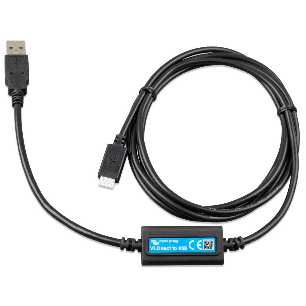 Інтерфейс VE.Direct-USB підключає продукти з підключенням VE.Direct до пристроїв з портом USB, наприклад, до комп'ютера. За допомогою цього кабелю також можна підключити більше двох продуктів VE.Direct до одного CCGX.